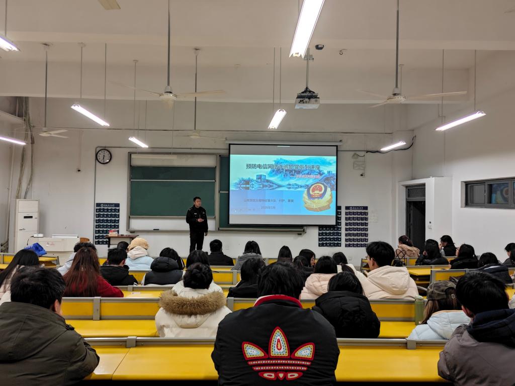 为切实增强学生防范电信网络诈骗的意识和自我保护能力,守护学生财产安全,营造平安和谐的校园氛围,3月4日,经管学院联合淮南市公安局高新技术产业开发区分局开展开学反诈第一课,学院学生干部及各年级学生代表到场聆听学习。
